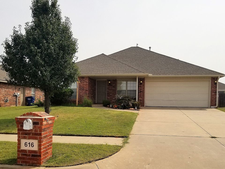 Welcome to 616 Castleridge Lane in Mustang, Oklahoma! This spacious 4-bedroom, 2-bathroom house is now available for lease. The home features a modern kitchen with a dishwasher, disposal, microwave, and plenty of cabinet space. Enjoy the convenience of a cable-ready living room with a cozy fireplace for those chilly evenings. The property also includes an alarm system for added security, as well as a covered patio perfect for outdoor entertaining. With a garage for parking and air conditioning to keep you cool in the summer months, this house has everything you need for comfortable living. Ceiling fans and blinds are also included for your convenience. Pets are welcome in this lovely home. Don't miss out on the opportunity to make 616 Castleridge Lane your new home sweet home! All Hallmark Property Management tenants are enrolled in the Residential Benefits Package (RBP) for $35/month which includes HVAC air filter delivery (for applicable properties), our best-in-class resident rewards program, and much more! More details upon application
