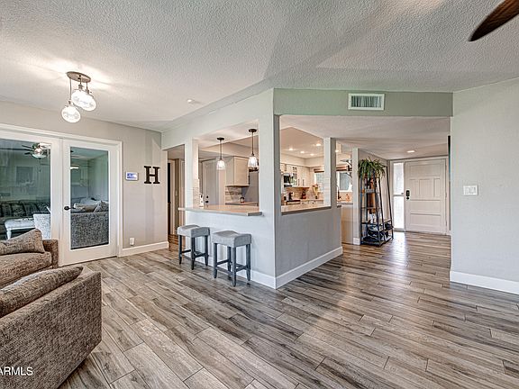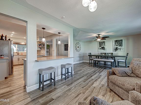 A 2020 Renovated, turnkey home to include roof, AC & windows and is located in a quiet golf course neighborhood close to Superstition Springs Mall and freeway access. Enter this spacious and functional block home with neutral paint and tasteful finishes. Boasts trend forward efficient kitchen that is bright & light with soft close cabinets and custom touches. Main living areas are adorned with tile plank flooring with cozy newer carpet in bedrooms and family room. Expansive and lush backyard with extended covered patio to add outdoor living space.