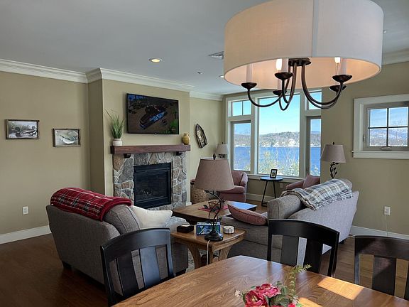 Beautiful 3 Bedroom 3 Bath END UNIT in sought after Bluegill Lodge of Meredith Bay. Direct elevator access opens into a one level expansive open concept floorplan with beautiful views of Lake Winnipesaukee and the surrounding mountains. Take in a wonderful sunrise without even getting out of bed. A second and third bedroom with adjoining bathroom are just down the hall, offering lots of privacy for guests. The relaxing deck has great views of the lake, mountains and distant boat traffic. The heated garage provides elevator access to unit as well as additional storage space. Meredith Bay residents enjoy access to an amazing amenity package which includes, two pools, waterfront jacuzzi, tennis courts, pickleball court, playground, fitness center, trail network, community garden, kayak cove, maple sugar shack, beach club and marina with seasonal restaurant. Enjoy close proximity to outlet shopping as well as Gunstock Mountain.