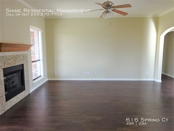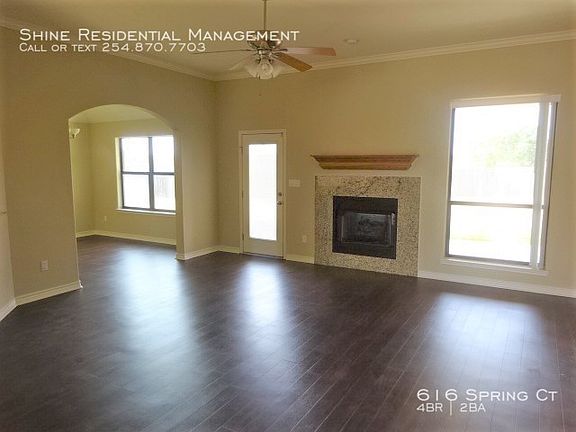 SCHEDULE A SHOWING ONLINE AT: showmojo.com/lh/f235ecf019 Available NOW Come and check out this beautiful 4 bedroom, 2 baths, 2303 sqft, home with 1 living and 2 dining areas located in the Spring Meadows subdivision in Belton. Walk into an entryway with a view of the spacious living area that features a fireplace. The gorgeous kitchen and breakfast area is off to the left and features granite countertops, black appliances, walk-in pantry, an island. The formal dining area is off the kitchen and living area. All bedroom are on the right side of the house. The master is spacious and offers a sitting area with bay window and en-suite bathroom. The master bath offers double sinks, corner jetted tub, separate shower, and walk-in closet. The large fenced backyard offers a playset and home is closing driving distance to the lake. This property accepts pets. Call us today for a showing. This property is currently zoned for Belton ISD. Professionally managed by Shine Residential Management (www.shinerm.com)