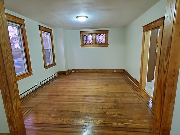 This 3 Bed/ 1.5 Bath boasts hardwood floors throughout the main level with matching wood trim. There is a Large kitchen and lots of cabinet space. The upper level is carpeted with large walk in closets. The full bathroom has a beautiful soak in jacuzzi tub. There's a large unfinished basement for extra storage and a large backyard with patio. There is a driveway on the side of the house for your convenience! Radiant heating source Video tour available!