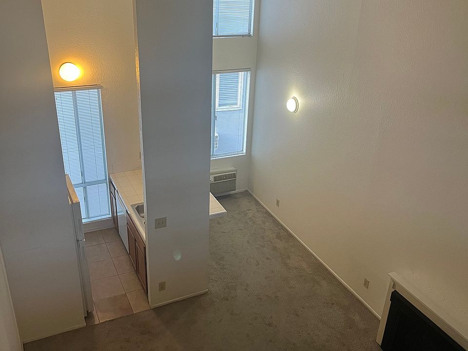 Huge Loft Apartment with very high ceilings! Beige carpeting throughout (steam cleaned before move in). Unfurnished. Walk to UCLA and Westwood Shops, coffee shops, Target, Starbucks, Whole Foods, Trader Joes, Ralphs, Restaurants, hospital and Theaters and more! High Ceilings, Quiet Bldg. Why live in a regular one bedroom with normal height ceilings when you can live in a spacious loft? Laundry on site. Maximum occupancy is two people. Assigned on-site gated parking *included. Stove, ac, dishwasher, refrigerator in unit. Loft area serves as bedroom and is approximately 12x12 Quiet building with mostly graduate students and professionals. Cats okay. Dogs will landlord approval, cats ok - pet deposit required. Minimum 6 month lease but can sign up to one year lease. Less than 10 minute walk to UCLA and Westwood Village shops and theaters. Great Location! *must own/have a car to get parking included in rent. 6 months to 1 year. Parking included if own a car, owner pays for hot water and trash pick up.