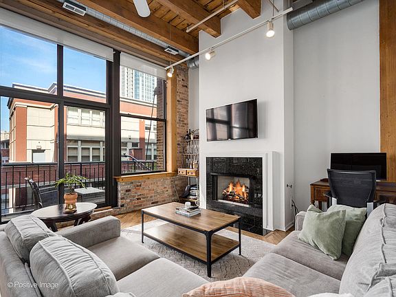 Discover sophisticated urban living in this sun-drenched brick and timber loft nestled in fabulous West Loop/Fulton Market location! This spacious two-bedroom, two-bathroom residence features soaring ceilings, gleaming hardwood floors, chic finishes, a cozy fireplace, and a large private balcony. Enter through a beautiful foyer that leads to a sprawling kitchen - the heart of the home - boasting updated appliances, stunning quartz countertops, ample cabinetry, and a sprawling island with an eat-in breakfast bar, perfect for entertaining. The open-concept layout provides a true dining area, while the expansive living space dazzles with large windows that flood the room with natural light. Both bedrooms are fully enclosed for privacy, featuring generous closet space and ensuite bathrooms. The guest suite includes a newly renovated bath with a tub/shower combination. The primary suite offers a walk-in closet, washer/dryer, and a sleek modern bathroom with a large shower and statement vanity. A rare, separate bonus room located just across the hall with electrical access provides all the extra storage you could need. Situated in the bustling West Loop/Fulton Market neighborhood, you're just steps from the city's top restaurants, shopping, and nightlife. Enjoy the ultimate convenience with access to public transportation, parks, dog parks, grocery stores, and more. An extra-wide garage parking space is available for an additional 30,000.