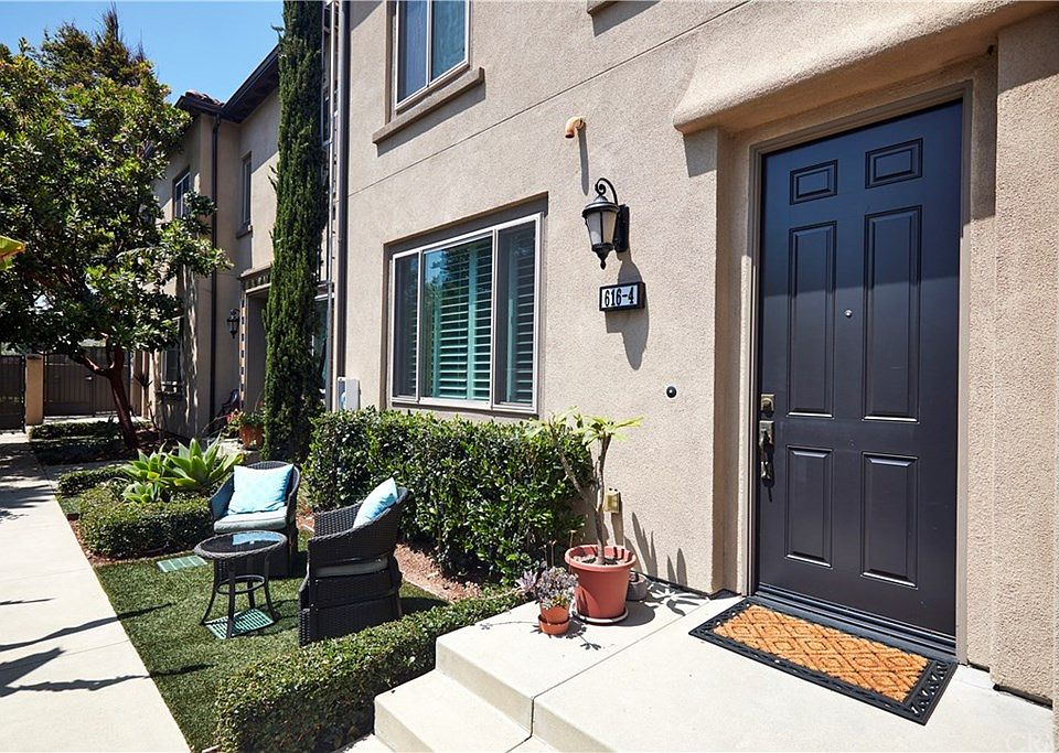 Welcome to this "like new built in 2012" 3 bedroom 2.5 bathroom Townhome. 616 W Imperial #4 will exceed all expectations. From the moment you enter, on the second level, the high ceilings and open floor plan allow you to imagine enjoying time within the space. Hardwood floors cover the main level which features the living room, dining area, kitchen, and 1/2 bathroom. There is a walk in pantry and coat closet on this level as well which are ideal for townhouse living. All three bedroom as well as laundry are on the third floor. The master suite is well suited with a large bedroom space, walk in closet, and nicely appointed bathroom. The two other rooms a situated on the opposite side of the unit to create a nice privacy buffer from the master. Garage is on the subterranean level, it is a 2 car tandem garage with the front potion of the tandem space setup as a basement den. This extra flex space is perfect for townhouse living. The complex offers ample guest parking private secure entrances and direct gate access to adjacent Acacia Park. Do not miss this opportunity to live in 1,560 square feet for $75,000 less than new construction.