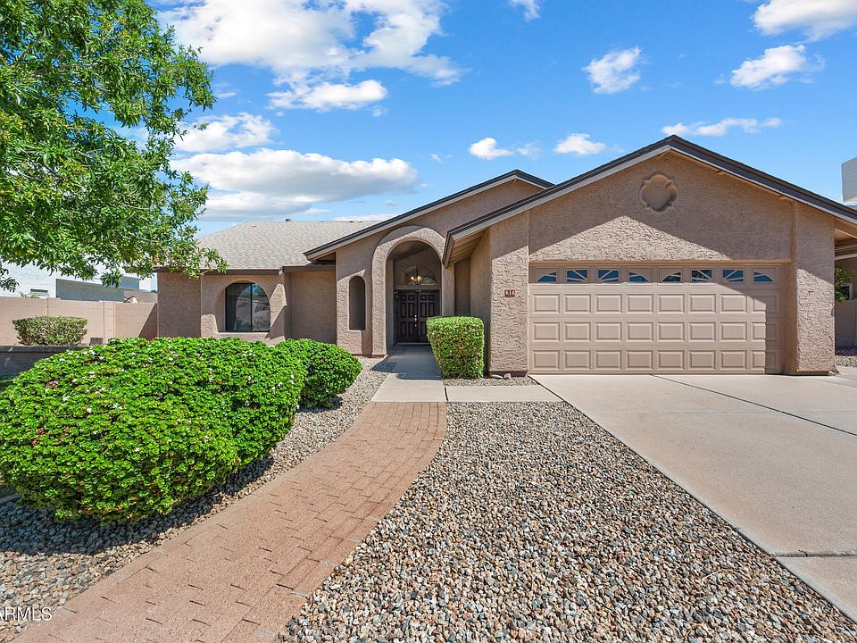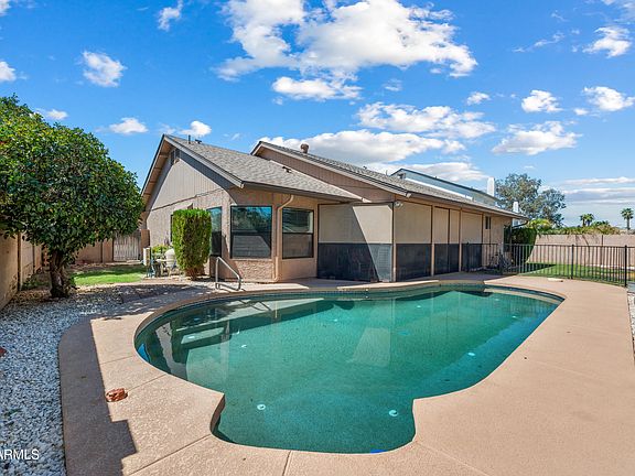 This beautifully maintained 3 bedroom, 2 bathroom Chandler home offers timeless curb appeal with a charming arched entry, manicured front lawn, and low-maintenance desert landscaping. Inside, vaulted ceilings and natural light create an inviting, open atmosphere across the living and dining areas. A screened porch leads out to a sparkling pool and spacious patio, ideal for both entertaining and relaxing. The home also includes a 2-car garage, generous storage, and plenty of charm throughout. Conveniently located near the 101 freeway, you'll enjoy quick access to shopping, dining, top schools, beautiful parks and everything the East Valley has to offer. A true blend of comfort, convenience, and Arizona lifestyle!