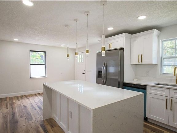 Welcome to your fully updated dream home in the heart of Pinellas Park! This spacious 4-bedroom, 3-bathroom residence has been completely renovated inside and out, offering the perfect blend of style, comfort, and peace of mind. The brand-new kitchen is a true showstopper, featuring all new cabinetry, modern appliances, and a striking waterfall quartz island that makes the perfect centerpiece for both cooking and entertaining. Inside, you’ll also find all-new plumbing, electrical, recessed lighting throughout, and elegant new LVP flooring that flows seamlessly across the home. There are two master suites, one with a private walk-out balcony, and all three bathrooms have been fully remodeled with fresh, modern finishes. The exterior is equally impressive with a brand-new roof, brand new durable Hardie board siding, several new windows, and a newly built balcony. A new double paver driveway provides plenty of parking, while the gated backyard offers secure storage for a boat or RV. The brand-new fence and gates enclose a small, low-maintenance yard perfect for outdoor enjoyment. Additional highlights include new lighting fixtures and hardware throughout, Flood Zone X! Requires NO flood insurance, and proven storm resilience, having withstood two recent hurricanes without damage or flooding. With every major system updated, this turnkey property delivers modern upgrades, functionality, and peace of mind—all just minutes from shopping, dining, schools, and Florida’s world-class beaches.