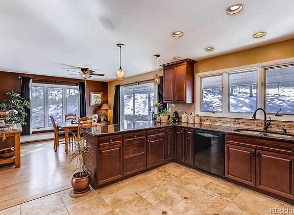 Updated split level situated on almost an acre in beautiful Perry Park! Experience privacy, peace, and quiet surrounded by mature pines and red rock formations. Fresh exterior and interior paint. Functional layout flows nicely with lots of natural light throughout. Beautifully upgraded kitchen with stainless appliances, granite, and radiant floor heating. Wonderful large entertaining space with bar area. Bathrooms have been recently upgraded with slab granite, new cabinets, and backsplash. New carpet in the main living room. Fabulous private Master Retreat with new carpet, en-suite w/generous dual shower, large closet and walk out to your lovely enclosed patio! Finished walk out basement with kitchenette and separate laundry that has rental potential or can be a Mother-in-Law apartment. Lovely backyard patio surrounded by towering pines and serene views!