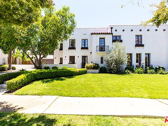 Grand Mediterranean beautifully set on a tree-lined cul-de-sac in Historic Cathay Circle. Glamorous step-down living room with fireplace and French doors lead to a rear patio with a striking waterfall and grassy yard, perfect for hosting outdoor dinners on warm summer nights. Bright, spacious kitchen opens to the dining room, with white Ceasar-stone counters, large island, and stainless-steel appliances. There are four ample bedrooms, one down and three up. The lower room is the perfect flex space for business or pleasure with a private entrance. The owner's bedroom retreat features a huge walk-in closet, large bathroom with tile shower and separate tub, and luxurious rooftop deck. Easily accessible garage has additional storage. This home features dark hardwood floors throughout, recessed lighting, wrought iron details, and a California basement that can be used as storage space or wine cellar. Only blocks to parks, LAs finest museums, The Grove, Beverly Hills, Century City, and future Metro Wilshire/La Brea purple metro-line station.