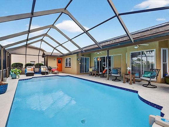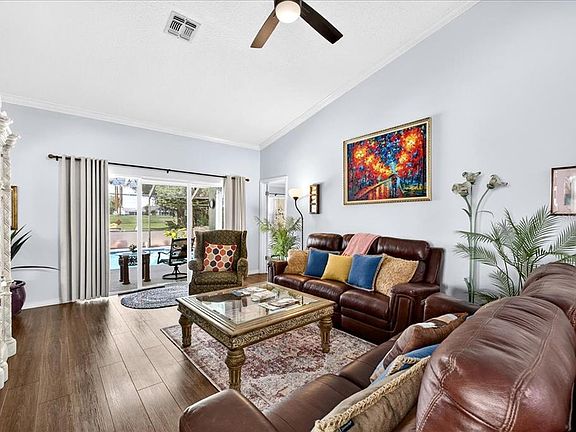 Discover a truly rare gem in the highly desirable Sandpiper Golf & Country Club! This beautifully updated 4-bedroom, 2-bath home is one of the very few in the community offering both four true bedrooms and a screened-in pool with expansive golf course views, perfect for entertaining, relaxing, and enjoying Florida living at its finest. The spacious primary suite stands out with two closets, one large walk-in closet and an additional standard closet. It also boast a tastefully updated en-suite bathroom. The split floor plan provides comfort and privacy for guests, with the guest bathroom also beautifully updated. This home features new luxury vinyl and tile flooring, fresh interior paint, stainless steel appliances, and updated light fixtures throughout. The large kitchen with a breakfast nook and views of the golf course flows seamlessly into the living and dining spaces - ideal for hosting family and friends. Step outside to your private covered lanai and pool area, where you can enjoy unbeatable views of the golf course, a highly sought-after feature in this neighborhood. The paver driveway and lovely landscaping add great curb appeal as well. Sandpiper is an active 55+ community offering a clubhouse, two pools, spa, tennis courts, fitness center, library, and daily activities. The low HOA fee includes cable, internet, and lawn care, ensuring worry-free living. Conveniently located near I-4, hospitals, shopping, restaurants, and more. Homes like this don’t come along often. Schedule your private showing today!