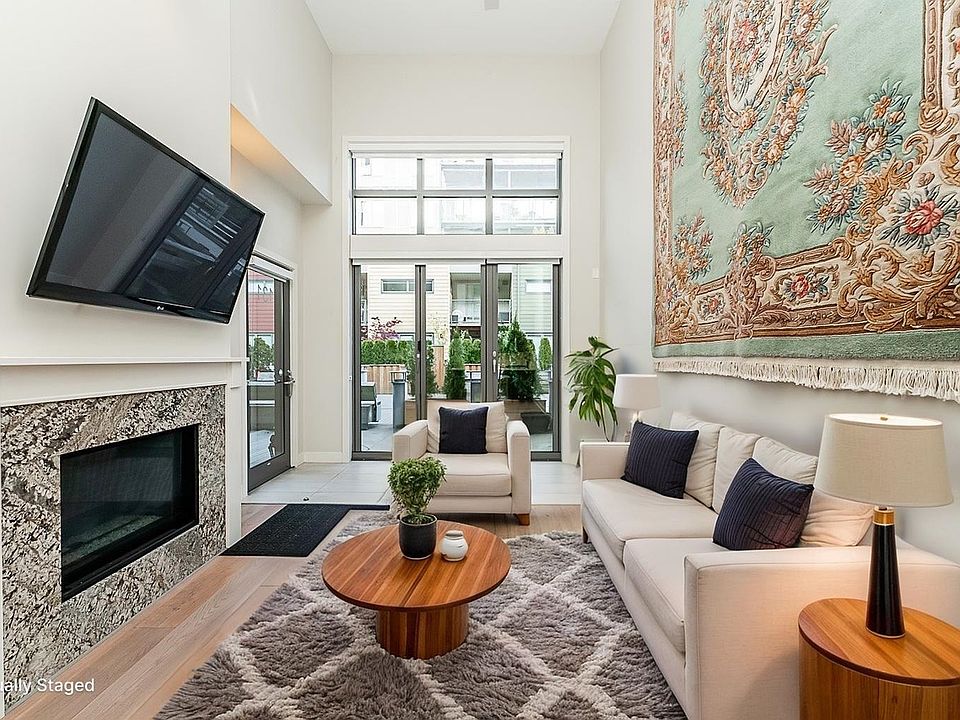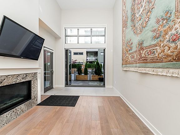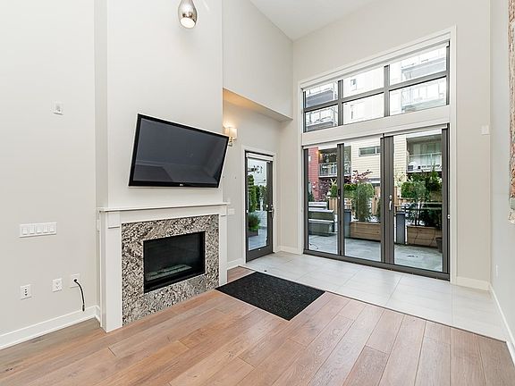 Welcome to "The Pier" in Steveston’s rarely available London Landing! This east-facing ground-level 1 bed + den unit features soaring 15’ ceilings and floor-to-ceiling windows that flood the space with natural light. With just under 750 sq ft, it offers 2 full bathrooms, a beautiful kitchen, and a versatile den that can be used as a 2nd bedroom or office. Enjoy seamless indoor-outdoor living with large bi-fold doors leading to your spacious garden patio, complete with a gas hookup. Steps from scenic dyke trails and a brand new waterfront park. Includes 1 parking and 1 locker. Rentals and pets allowed. A truly special home—don’t miss out!