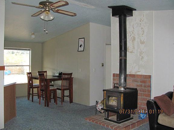 Drastic Price Reduction. 2.5 Acres with fantastic views. NEW ROOF being INSTALLED. FHA APPROVED TIE DOWNS on 3 bedroom home with split floor plan. Home sits on a complete 12 inch thick concrete slab. Wood Stove. There is a nice work shop out back with 220 Electric. Huge 2 car attached Garage, with extra storage space. RV Hook Up. 2 Covered Decks with Jacuzzi. Fenced Flat all uable land. This property provides a lot of privacy. Seller says he really wants to sell and is very motivated- please bring us an offer.