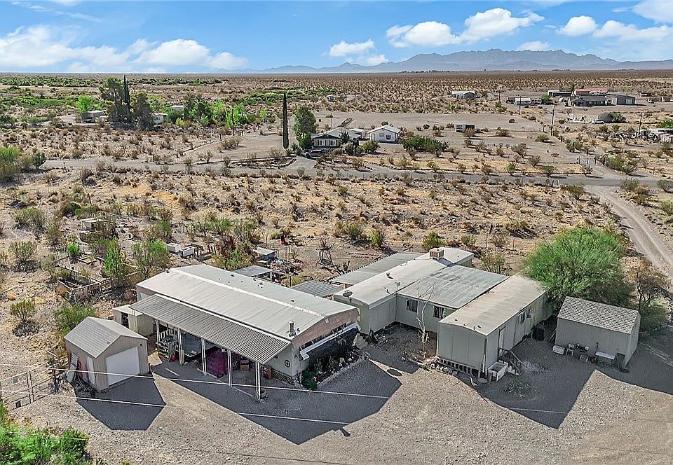 Endless possibilities with peaceful country living! This inviting property sits on 2.27 acres in a quiet area of Pahrump, surrounded by beautiful mountain views and open space. The main home is a 1,440 sq. ft. doublewide featuring 2 bedrooms, 2 bathrooms, and a recently upgraded kitchen that’s perfect for home-cooked meals and gatherings. The second home is a 672 sq. ft. singlewide with 2 bedrooms, 2 bathrooms, and an addition, offering great potential for guest quarters, extended family, or a cozy rental. Enjoy the convenience of your own private well and septic system, and plenty of room for horses, toys and a garden. With a little TLC, this property could be your peaceful desert retreat!