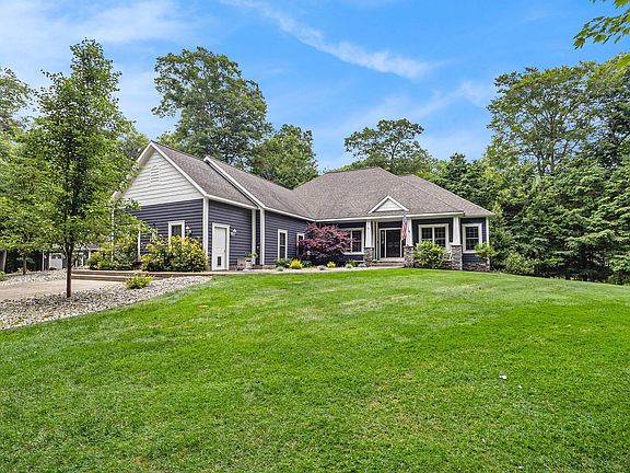 Tranquil setting in Scenic woods on 2.5+ acres. Just minutes from beaches and state parks you can hear the waves of Lake Michigan. House features 5 bedrooms