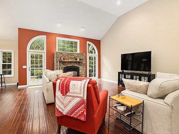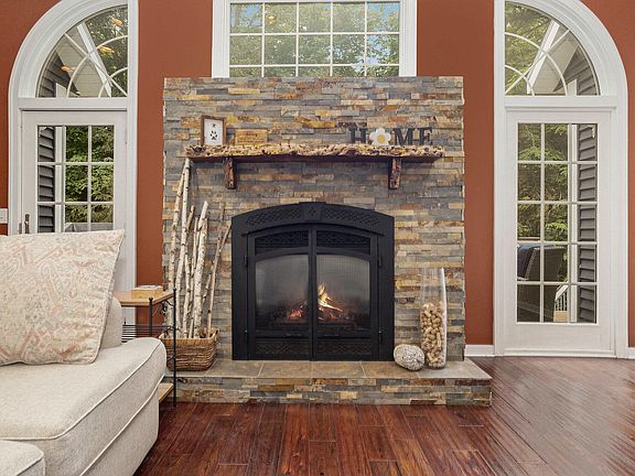 and 3.5 bathrooms with a large deck and full walkout basement that looks over the woods and brick patio with gorgeous fire pit. Main garage is three stall insulated and has additional four space heated 30 x 36 garage to house all your favorite toys. Main level has wide open dining, living, and kitchen. Primary bedroom is on the main level and has it's own bathroom with jack and jill sinks. Two other bedrooms are on main level with additional 1.5 baths and main floor laundry. Lower level has a large family room and two additional bedrooms and full bath. Bonus...home has central vacuum. Great home in a great location!