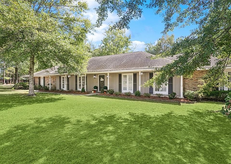 BRAND-NEW ROOF TO BE INSTALLED BEFORE THE KEYS ARE YOURS! Tucked inside the wildlife sanctuary community of Brier Lake Estates, this 4-bedroom, 2-bath home sits on an acre of natural beauty where geese waddle by and native birds add to the sanctuary-like vibe. As you enter the foyer, you can't help but be drawn into the stunning living room-- showcasing 13' beamed cathedral ceilings and a wood-burning fireplace that anchors the space. From here, glass slider doors flow seamlessly to a covered brick patio— well suited for hosting memorable get togethers or peaceful moments in the fresh air. The elegant dining room, with French doors facing the front porch, offers a charming backdrop for entertaining and holiday gatherings. The spacious backyard invites gardening, volleyball, birdwatching, or even the addition of a studio for multigenerational living. Lovingly built and maintained by original owners, this home is ready for its next chapter. Just minutes from I-12, local shops, and seasonal events, Brittany Drive is where nature and neighborhood charm come together. Located in Flood Zone C.