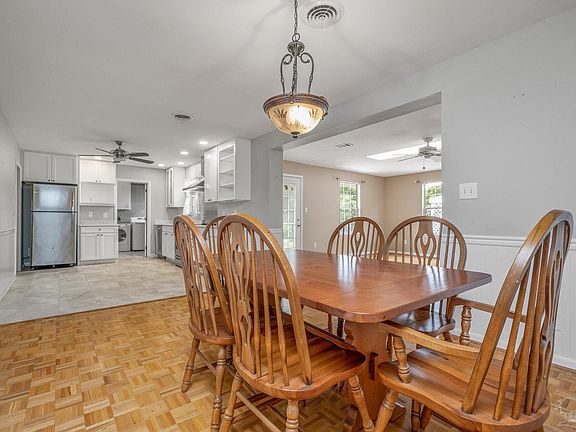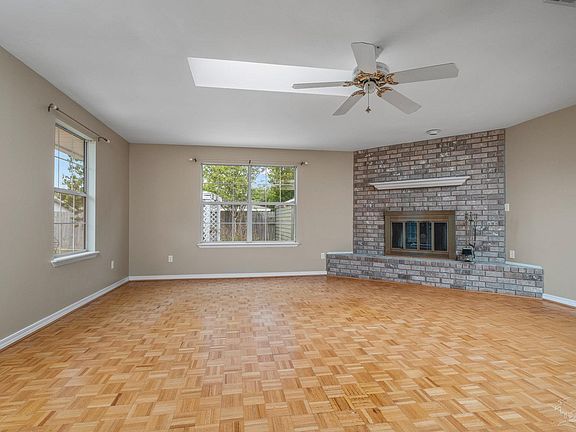 Beautiful Belvedere Park home conveniently located near everything you need! This home offers lovely wood parquet flooring throughout, along with nice ceramic tile flooring in the wet areas....so NO carpet anywhere! You'll appreciate having two spacious living areas ~ an open, remodeled kitchen with gorgeous soft close cabinets ~ newer appliances and quartz countertops ~ all appliances stay including the stainless kitchen refrigerator, washer, dryer and laundry refrigerator! Your beautiful kitchen is open to the generous dining area which overlooks the large family room, complete with a gas fireplace. The family room boasts a skylight that offers fantastic natural light! This is the perfect layout for entertaining family and friends! The bedrooms offer a split layout for extra privacy. Outside you can enjoy the backyard brick patio, beautifully landscaped yard and you also have a 10' x 12' workshop to store your yard tools and toys. Out front, you have a nice covered front porch where you can sit and visit, plus a single car carport. This home has been meticulously maintained and with it being 15+ minutes to downtown Pensacola and Pensacola Beach, it is the perfect location!