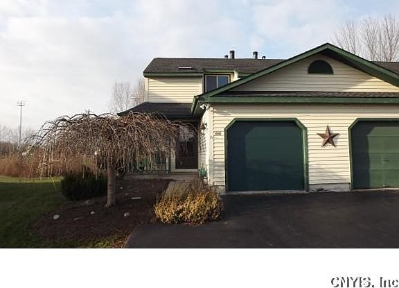 Nicely maintained end-unit Cicero Townhome with no HOA fees. Offers many new features including central air, wall to wall carpet, furnace, front & rear patios, landscaping, interior & exterior paint, insulated garage door and more. Basement has been finished adding lots of additional living space. Seller is motivated. Taxes displayed do not reflect Basic STAR savings of $$669.00.