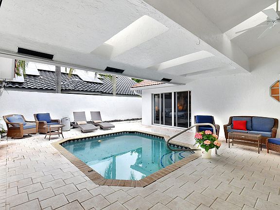 Check out this fantastic opportunity to own a rare courtyard style home with a pool in sunny Boynton Beach. This home, situated on the first tee box of Westchester Country Club, is everything you have been searching for. The main home features an open concept living area which overlooks the pool. The kitchen offers slow close white shaker cabinetry with granite countertops, stainless steel appliances/hood vent along with a ton of room for storage. The separate mother-in-law suite has a private entrance off the courtyard and is equipped with a full bathroom and large closet. With tons of flexibility, this space can be used as the perfect retreat for out of town guests or a private home office. Don't wait to come view this beautiful home and make it your own.