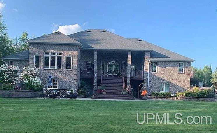 Executive Riverfront Estate just 10 minutes west of Escanaba is the ultimate in privacy, luxury and natural beauty. This ten acres sits on 700 feet of Ford River frontage and is unmatched in terms of peaceful country living while being close to town. Brick lighted pillars greet you as you enter the property which is professionally landscaped & maintained including an underground watering system. This home has been expertly designed from the custom kitchen cabinets with crown molding, center island with top of the line Wolf and Sub-zero appliances to the private home office with abundant built in cabinets and drawers, with a view of this gorgeous property. Spectacular views of the river from almost every room! Master suite includes his and her closets with custom built ins, jetted garden tub, and custom shower. Two main floor bedrooms share Jack and Jill style bathroom. Walkout Basement includes immaculate custom bar, bathroom with heated floor, oversized bedroom, a theater room and storage space. House has two car attached garage along with a detached three car garage for extra storage and work space.