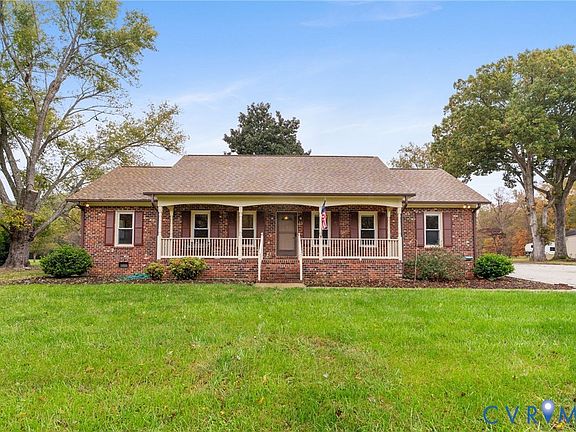 Beautifully situated in Sandston, this charming all-brick ranch rests on just over three acres of rolling grassy hills and open pastureland accented by mature trees, offering both peaceful views and a sense of privacy. This property is ideal for those seeking country living with suburban convenience—close to I-64 and I-295 for quick access into Richmond and beyond. A huge detached garage provides the perfect space for a workshop or vehicle storage, complemented by a wide driveway with room for guests or work vehicles, plus a detached shed for additional storage. Outdoor living shines with a full front porch for morning coffee and a newly painted rear deck for entertaining, all supported by the reliability of a whole-house generator. Inside, you’ll find a cozy den with a brick-surround gas fireplace and beamed ceiling, an inviting eat-in kitchen, a large laundry and mudroom, and three bedrooms including a primary suite with an updated tiled shower, along with a spacious hall bath and convenient half bath. Meticulously maintained by its current owners, this home also offers newer windows, a newer roof, a gas fireplace, a water purification system, and recent servicing of the septic and well. Whether move-in ready or awaiting your personal touches, this Sandston property offers a rare opportunity to enjoy tranquil land, modern comforts, and commuter convenience all in one.