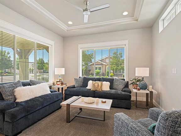 Welcome to Cadence, the highly sought after gated 55+ community built by Brighton Homes! This adorable Bungalino floor plan situation on a corner lot is move-in ready. Loaded with amenities, Community offers 10,000 sq ft clubhouse with lap pool, hot tub, kitchenette, dining, lounge, locker rooms, workout and yoga rooms plus pickleball and bocce ball. It's centrally located near shopping, medical facilities and restaurants. This great home features Bosch kitchen appliances with gas cooktop, quartz counters, Kohler fixtures, engineered hardwood flooring throughout, tiled bathrooms and so much more. Energy Star Certified. Outside has professionally landscaped front yard with lush green grass, trees, numerous plants, covered patio and limited maintenance by HOA along with snow removal of 2 inches on up. Your Cadence home awaits!