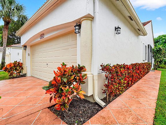 Rare two car garage end-unit fully renovated villa in Floral Lakes. This move-in-ready home has been professionally updated throughout and features 24'' porcelain tile flooring, crown molding, smooth ceilings (no popcorn), and upgrades at every turn.Originally designed as a three-bedroom home, one wall was thoughtfully removed to create a large, open dining room, enhancing the home's flow and entertaining space. The wall can easily be replaced to restore a third bedroom or den, offering flexibility to suit a variety of needs. A floorplan is available in the MLS document section for agents.The renovated eat-in kitchen includes pull-out shelving and drawers, under-cabinet lighting, quality finishes, and new and nearly new appliances Additional features include air drops in the primary closet to help control humidity and a large, air-conditioned attic space with proper flooring and standing room, ideal for storage.