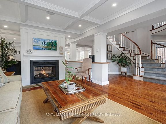 Timelessly renovated 4+1 bedroom, 5 bathroom residence on a premium lot backing onto a treed ravine and just a five minute stroll to the Ottawa River. Over 3300 square feet + finished basement. The main level welcomes you with elegant coffered ceilings throughout the living room, formal dining room & family room, while a 2-sided gas fireplace unite the living and family room. The main floor laundry room adds everyday convenience and offices/dens on both the main and lower levels, allow versatile work-from-home options. The gourmet kitchen is a chef's dream-complete with island, marble backsplash, gas range, stainless steel appliances, wine fridge, and a casual eating area with access to the backyard deck. The second level boasts four generous bedrooms and three full bathrooms. The expansive primary suite includes a spacious walk-in closet & 5-piece spa-inspired ensuite with a free-standing soaker tub, open shower, and double sinks. A second bedroom offers its own 3-piece ensuite, and a third full bathroom serves the remaining rooms. The fully finished lower level offers a teen retreat or welcoming guest space with a large rec room, 3-piece bathroom, a versatile den/bedroom & an office/den. This turn-key ravine property is a rare offering where luxury, privacy, and proximity to the River come together in perfect harmony.