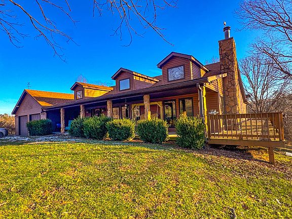 Set on an impressive 118.94± acres of rolling, scenic countryside, this stunning 3,055-square-foot home offers the perfect blend of comfort, privacy, and outdoor adventure. The 3-bedroom, 2.5-bath residence features an open floor plan with a spacious living room flowing seamlessly into the kitchen, highlighted by beautiful hickory tongue-and-groove floors, with a generous dining room just off the kitchen for easy entertaining. A second family room, large home office, and three fireplaces provide ample space for both relaxation and productivity, while the attached two-stall garage adds everyday convenience. A newer roof, only two years old, tops the home, and the expansive 1,647-square-foot wraparound porch offers breathtaking views-perfect for gatherings, grilling, or simply enjoying the abundant wildlife. The property includes a 720-square-foot shop located approximately 500 yards from the home, along with a 50x100 pole building near the road that could serve as an excellent income opportunity. Trails wind throughout the land for easy access or recreational riding, complemented by a flowing stream, a small pond, white oak trees, and roughly four acres of open ground ideal for food plots, gardening, or a hobby farm. With excellent hunting for deer, turkey, and squirrel, and situated at the end of a dead-end county road, this remarkable property offers unmatched privacy while remaining easily accessible.