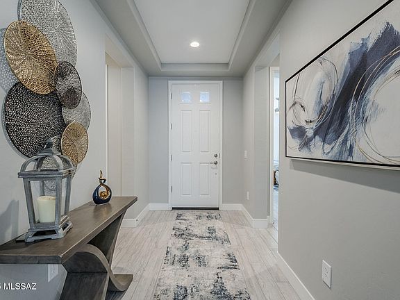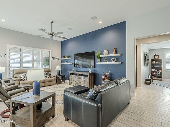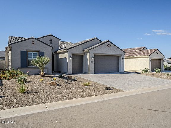 BETTER THAN NEW in SaddleBrooke Ranch! Why wait to build when you can move right into this elegant 2022 Alora model with 2,126 sq ft of refined living. Located in this highly sought-after 55+ community offering golf, pools, pickleball, restaurants, and more. The chef's kitchen features 42'' cabinets, quartz counters, tile backsplash, premium appliances, soft-close cabinetry, and an extended dining area. Enjoy seamless indoor-outdoor entertaining in the inviting AZ room. Additional highlights include elegant pavers front and back, a dedicated golf cart garage, and an oversized den. The beautifully landscaped, fenced backyard with fire pit is perfect for relaxing or hosting guests. A thoughtfully designed, move-in-ready home offering exceptional value!