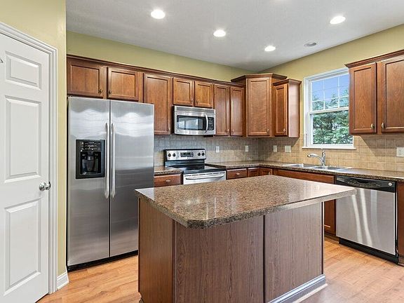 Beautiful 3 level M/I Homes Townhome-The Dawson. Features 3 bedrooms w/2.5 baths-huge island kitchen-stainless steel appliances and laminate wood flooring - dining room-deck-great room-w/ fireplace-9' ceilings & large finished lower level family room with patio and garage access- Owner's bedroom has upgraded bath with whirlpool tub and shower. 2nd floor laundry room! END UNIT!!