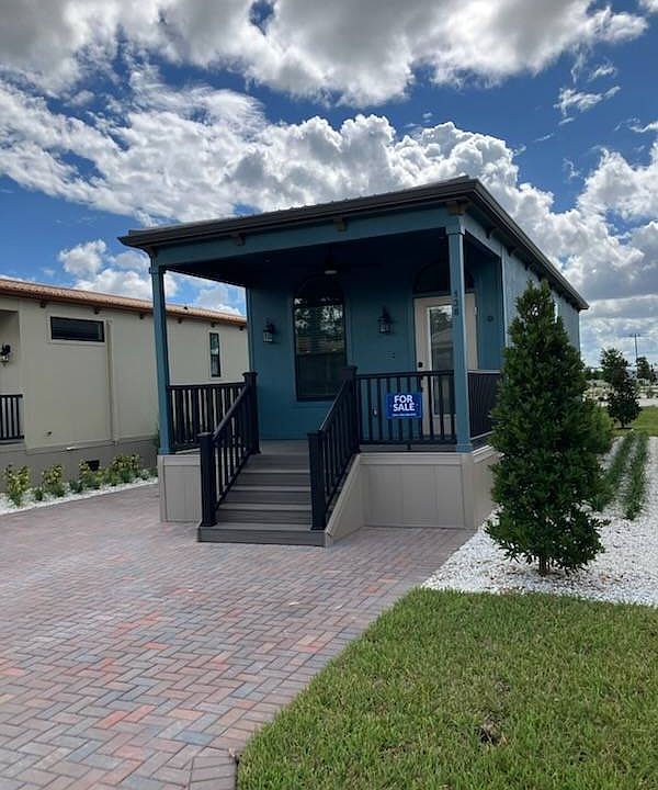 Escape to the brand NEW 2025 2 Bedroom, 1 Bath Resort Cottage Home, a true gem designed for comfort and modern living. This exceptional residence boasts a bright floor plan, meticulously crafted to maximize space and natural light. The contemporary bathroom features a luxurious glass-enclosed shower and an LED lighted mirror, adding a touch of elegance and functionality. For your convenience, a stacked washer and dryer are seamlessly integrated into the unit, making everyday chores a breeze. Step outside and enjoy the inviting 8' covered front porch, an ideal space for morning coffee, evening relaxation, or entertaining guests in style. The heart of this home, the kitchen, is a chef's delight, equipped with energy-efficient stainless steel appliances that blend seamlessly with the sophisticated design. Gleaming quartz counters provide ample workspace, complementing the soft-close cabinets that offer both aesthetic appeal and practical storage. A deep stainless sink adds to the kitchen's functionality and modern flair. This stunning cottage is nestled within the Resort, an exclusive 55+ gated community that redefines active adult living. The Cottage Resort offers an unbeatable combination of affordability, accessibility, and adventure, promising a lifestyle of leisure and enjoyment. Perfectly situated in North Port, Florida, residents will discover a vibrant locale offering incredible shopping destinations and a diverse array of fine restaurants to satisfy every palate. For those seeking outdoor thrills and sun-drenched days, thrilling adventures and pristine beaches are just a short, convenient drive away. Life at our Cottage Resort is designed for ease and enjoyment. Site fees include covering essential services such as trash removal and meticulous lawn care, ensuring a pristine environment without the hassle. Furthermore, residents gain full access to an impressive array of amenities designed to enhance their lifestyle. Dive into the refreshing waters of the heated saltwater pool, unwind in the soothing spa, or host delightful gatherings at the well-appointed grilling area. We understand that pets are family too, which is why our Cottage Resort is proudly pet-friendly, welcoming your beloved companions to share in the good life. Don't let this extraordinary opportunity slip away! Whether you dream of escaping the harsh winter snows or envision year-round coastal living, this resort cottage offers the perfect sanctuary. Schedule your personal tour today and embark on a journey to discover your perfect coastal retreat, where every day feels like a vacation.