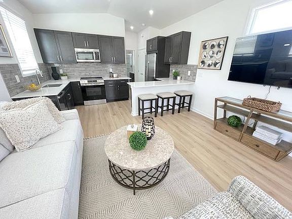 Escape to the brand NEW 2025 1 Bedroom, 1 Bath Resort Cottage Home, a true gem designed for comfort and modern living. This exceptional residence boasts a bright and airy open floor plan, meticulously crafted to maximize space and natural light. The contemporary bathroom features a luxurious glass-enclosed shower and an LED lighted mirror, adding a touch of elegance and functionality. For your convenience, this home includes a walk-in closet and the stacked washer and dryer are seamlessly integrated into the unit, making everyday chores a breeze. Step outside and enjoy the inviting 8' covered front porch, an ideal space for morning coffee, evening relaxation, or entertaining guests in style. The heart of this home, the kitchen, is a chef's delight, equipped with energy-efficient stainless steel appliances that blend seamlessly with the sophisticated design. Gleaming quartz counters provide ample workspace, complementing the soft-close cabinets that offer both aesthetic appeal and practical storage. A deep stainless sink adds to the kitchen's functionality and modern flair. This stunning cottage is nestled within the Cottage Resort, an exclusive 55+ gated community that redefines active adult living. Our Cottage Resort offers an unbeatable combination of affordability, accessibility, and adventure, promising a lifestyle of leisure and enjoyment. Perfectly situated in North Port, Florida, residents will discover a vibrant locale offering incredible shopping destinations and a diverse array of fine restaurants to satisfy every palate. For those seeking outdoor thrills and sun-drenched days, thrilling adventures and pristine beaches are just a short, convenient drive away. Life at our Cottage Resort is designed for ease and enjoyment. Site fees include covering essential services such as trash removal and meticulous lawn care, ensuring a pristine environment without the hassle. Furthermore, residents gain full access to an impressive array of amenities designed to enhance their lifestyle. Dive into the refreshing waters of the heated saltwater pool, unwind in the soothing spa, or host delightful gatherings at the well-appointed grilling area. We understand that pets are family too, which is why our Cottage Resort is proudly pet-friendly, welcoming your beloved companions to share in the good life. Don't let this extraordinary opportunity slip away! Whether you dream of escaping the harsh winter snows or envision year-round coastal living, this resort cottage offers the perfect sanctuary. Schedule your personal tour today and embark on a journey to discover your perfect coastal retreat, where every day feels like a vacation.