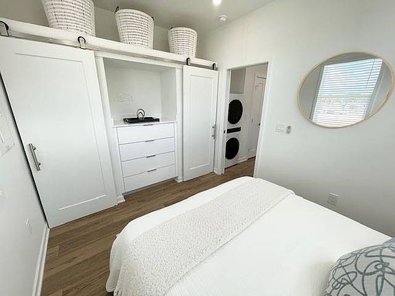Contemporary bathroomGleaming quartz countersStacked washer and dryerSpacious pantryEnergy-efficient stainless steel appliancesDeep stainless sinkLuxurious glass-enclosed shower
