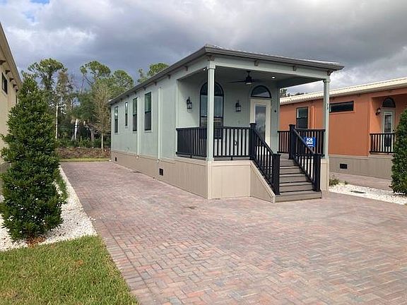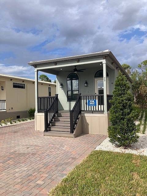 Escape to the brand NEW 2025 2 Bedroom, 1 Bath Resort Cottage Home, a true gem designed for comfort and modern living. This exceptional residence boasts a bright floor plan, meticulously crafted to maximize space and natural light. The contemporary bathroom features a luxurious glass-enclosed shower and an LED lighted mirror, adding a touch of elegance and functionality. For your convenience, a stacked washer and dryer are seamlessly integrated into the unit, making everyday chores a breeze. Step outside and enjoy the inviting 8' covered front porch, an ideal space for morning coffee, evening relaxation, or entertaining guests in style. The heart of this home, the kitchen, is a chef's delight, equipped with energy-efficient stainless steel appliances that blend seamlessly with the sophisticated design. Gleaming quartz counters provide ample workspace, complementing the soft-close cabinets that offer both aesthetic appeal and practical storage. A deep stainless sink adds to the kitchen's functionality and modern flair. This stunning cottage is nestled within the Resort, an exclusive 55+ gated community that redefines active adult living. The Cottage Resort offers an unbeatable combination of affordability, accessibility, and adventure, promising a lifestyle of leisure and enjoyment. Perfectly situated in North Port, Florida, residents will discover a vibrant locale offering incredible shopping destinations and a diverse array of fine restaurants to satisfy every palate. For those seeking outdoor thrills and sun-drenched days, thrilling adventures and pristine beaches are just a short, convenient drive away. Life at our Cottage Resort is designed for ease and enjoyment. Site fees include covering essential services such as trash removal and meticulous lawn care, ensuring a pristine environment without the hassle. Furthermore, residents gain full access to an impressive array of amenities designed to enhance their lifestyle. Dive into the refreshing waters of the heated saltwater pool, unwind in the soothing spa, or host delightful gatherings at the well-appointed grilling area. We understand that pets are family too, which is why our Cottage Resort is proudly pet-friendly, welcoming your beloved companions to share in the good life. Don't let this extraordinary opportunity slip away! Whether you dream of escaping the harsh winter snows or envision year-round coastal living, this resort cottage offers the perfect sanctuary. Schedule your personal tour today and embark on a journey to discover your perfect coastal retreat, where every day feels like a vacation.