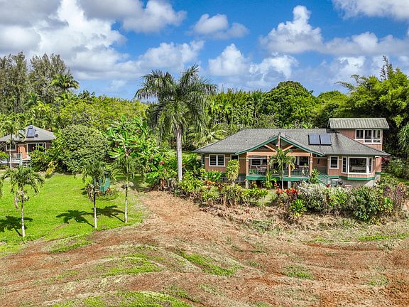 The property offers an abundant array of tropical fruit trees and botanicals, including navel orange, lemon, lime, papaya, pineapple, 11 macadamia nut trees, Samoan dwarf coconut, avocado, ginger, multiple varieties of banana, breadfruit, Surinam cherry, and tangerines. For wellness enthusiasts, the grounds also provide awapuhi ginger, noni, edible flowers, and additional culinary and medicinal plants. Flowering trees and ornamentals—including jacaranda, puakenikeni, queen crepe myrtle, coral tree, rainbow shower, and numerous orchids—allow for creating custom leis and vibrant floral arrangements.