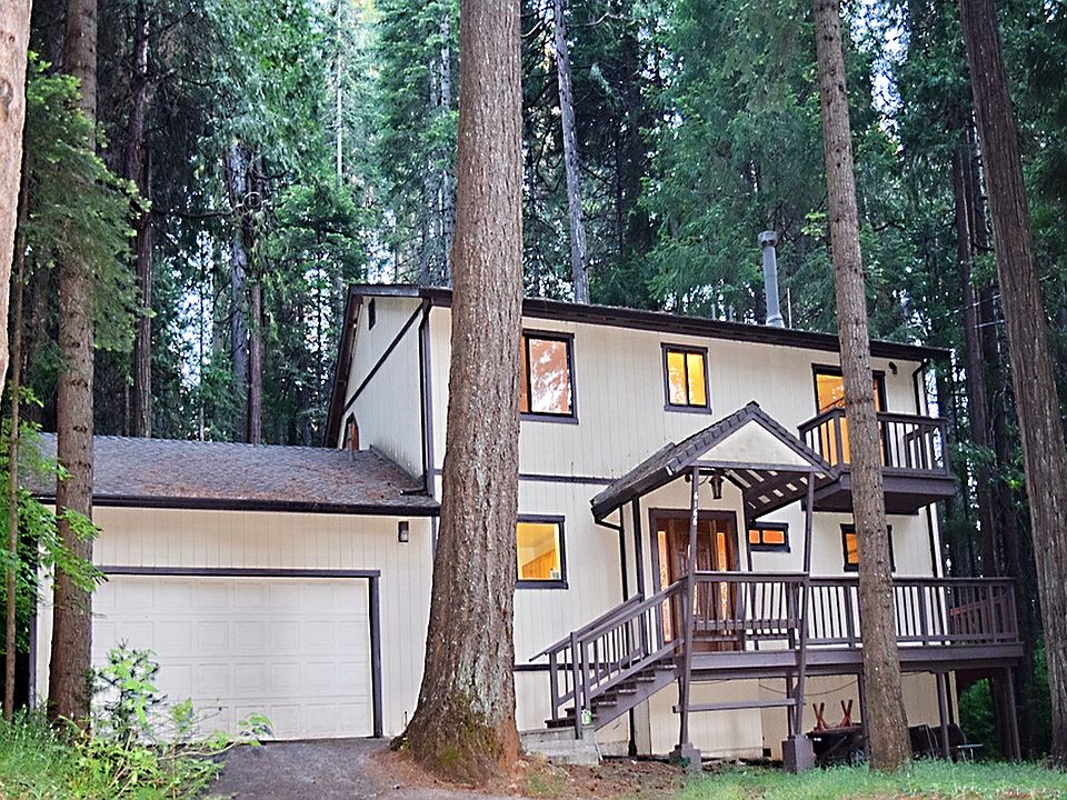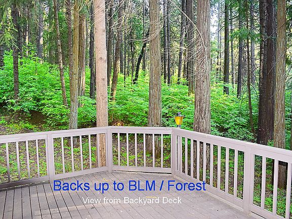 Custom home nestled on a beautiful forested lot!Vaulted wood beamed ceiling gives a cabin feel. Home has an open floor plan and is perfect for a getaway or everyday home! Large kitchen with tons of cabinets and counter space.Features include: New windows on downstairs back and a new pellet stove!