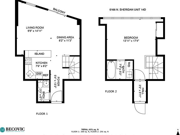 - Total interior livable area: 671 sqft