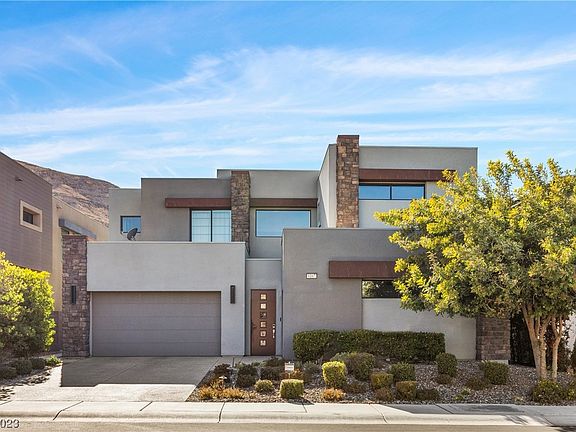 Nestled in the sought after Cliffs Neighborhood of Oluna, this exquisite home sits on the best lot with uninterrupted views of the spring mountains and its vistas.From its custom curb appeal with manicured mature trees to its upgraded interior all the way to the relaxed styled backyard adorned with a tufted lawn, plunge pool/Spa & waterfall, you will find that true attention to detail has been paid throughout this ultra modern yet warm & cozy Summerlin masterpiece.An expansive entry foyer with a modern staircase & opulent Chanderlier welcomes you.Your chef inspired kitchen complete with state-of-the-arts appliances & an oversized quartz countertop which opens into a living room area flanked by wide glass windows & a huge sliding door that incorporates that indoor-outdoor feel awaits. Also find a Next Gen Suite complete with its own kitchenette, a Well appointed primary suite upstairs, Custom light fixtures,Custom closets in every bdrm, surround sound, smart home w/ remote access etc.