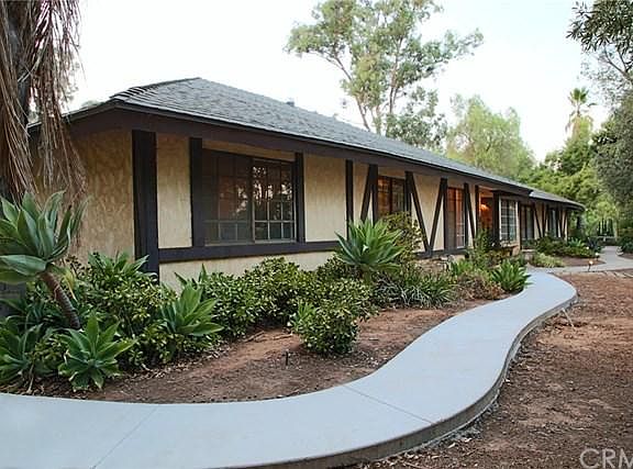 Bring your paint brushes and imagination to this one-of-a-kind, somewhat secluded, full acre of horse property hidden in the La Sierra Hills. A long gated private driveway lined with mature trees and succulents, beckon you to a private oasis with a circular driveway plus a 3-car garage, with even more parking adjacent to garage. In addition to the sprawling ranch style home that needs carpet, paint, and TLC, there's a separately fenced barn, large enough for stacks of hay bales or car(s), including two skylights, a tack room, and additional loft storage. Behind the barn are two stalls and a huge corral for your critters (horses, goats, pigs, etc). The immediate back yard, with amazing views of the hills that separate La Sierra from Norco, is separately fenced to protect small dogs/cats. Without fail, even on the hottest of days, every evening before sunset, there is a cool breeze that blows over the hills and onto this property. Listen to the leaves blow, the owls hoot, and the nickering of horses waiting for their meals. This home boasts 4 beds, including a master suite with 2 separate closets (one a walk-in), and a hallway bathroom with custom vanity & roman tub. The kitchen layout is large enough for a custom remodel, or just paint the cabinets and utilize the existing granite counters, as well as a walk-in pantry and separate laundry room. Formal living and dining rooms, as well as a huge family room with fireplace and beamed ceiling. Homeowner lived here for 30 years!