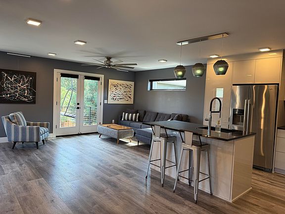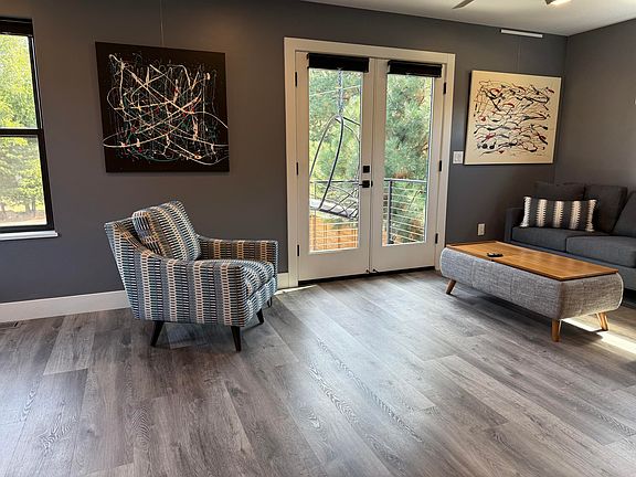 You absolutely need to see this spectacular home in Woodriver Village. Situated on a private street in one of Bend's most desirable neighborhoods you'll be smack-dab in the center of It all. Grab your paddleboard, the Deschutes River is just across the street, the Old Mill and River Trail are a short walk away, hop on your bike to explore the trails or head downtown, plus Mt Bachelor is only four roundabouts away! This property is ideal for both work and play; relax at home with custom tile, quartz countertops, a skylight in the shower, an eye-catching floating staircase, and a polished garage floor. The main level boasts a finished garage with utility sink, storage closet and direct access to the fenced low maintenance yard. The second floor features an custom kitchen with a spacious open living area, laundry room, pantry and a powder room. Upstairs you will find the owner's suite with a walk in closet ensuite bath and balcony, second bedroom, full bath and a bonus space.