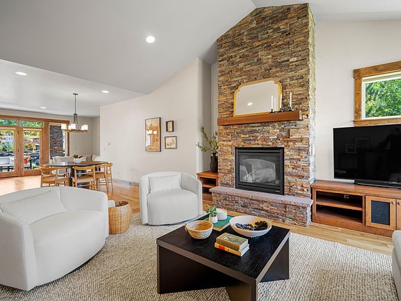 Experience this stunning home where Pacific Northwest architecture and contemporary design converge with natural surroundings just out the front door. Discover a 4-bed, 3.5-bath haven at Broken Top Community. Great room floorplan with large view windows, floor to ceiling stacked stone gas fireplace with custom wood mantle, hearth, and built-ins, vaulted ceiling, and Acacia hardwood flooring. Slab granite kitchen island with extra seating, counters with subway tile back splash, stainless appliances, and remote Hunter Douglas blinds. Thoughtful separation to the primary suite wing with spa like tile walk-in shower. Two bedrooms on the main with another bedroom, full bath, and media/ bonus room upstairs. Easy access to miles of soft trails. Enjoy the spacious grassy level above the covered outdoor living area with stamped concrete patio and hot tub. Naturally landscaped with some lawn. The heated garage is a 3-car tandem with custom built-ins. Visit: BrokenTop.com