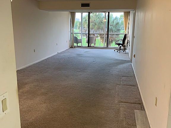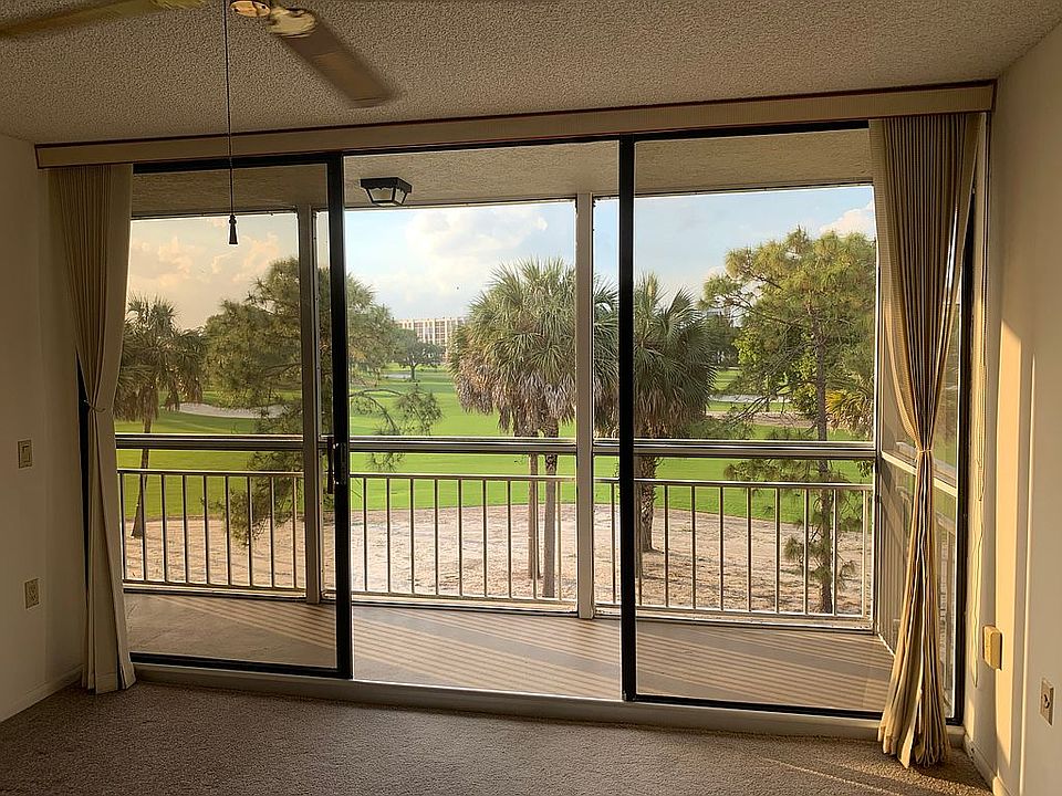 This unit is the only one on the market with a golf course view and two balconies. Tucked away in the back NW corner away from most traffic and furthest from teh entrance. Two large bedrooms and baths. Separate laundry with an attached 10x10 bonus room big enough for a bed or home office. Maintenance includes water, trash cable (with HBO), building insurance including windstorm, two pools (heated). 40 yr inspection and new elevators paid. Assigned parking right in front and plenty of guest parking. Unit in great shape but it is all original. The carpet in the pictures has been removed and ready for tile. Selling AS IS. Newer AC (2013), HW heater, refrigerator. HOA requires 20% down, no renting for 2 years, dog 20lbs or less. Five minutes to Town Center, 10 minutes to Mizner Park. $2000 credit for new carpet. Will work with buyer broker. Not looking for a listing agent or any other real estate services. If you are a legitimate buyer, please text me at the number in this listing.