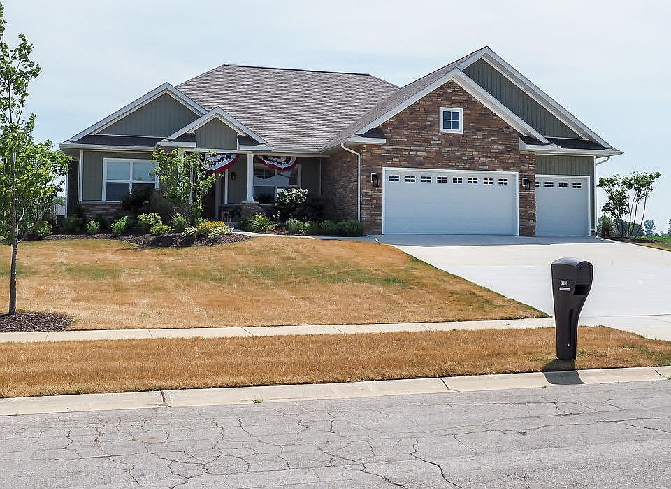Practically new! Seller only lived here for a few months before being relocated elsewhere! Their loss is your gain! Impressive custom built ranch with master suite on one side opposite the other bedrooms. It's inviting open floor plan makes for easy living with high ceilings, loads of windows, floor to ceiling fireplace, main floor laundry, huge island in kitchen and custom cabinetry. Other noteworthy items include, hardwood floors, colors are tasteful and soothing, covered front porch, and full unfinished basement plumbed for a bath with egress window for you to complete if you wish. Professionally landscaped yard and three car garage in desirable neighborhood with trails. This home is both Chic and Classic. Welcome Home!