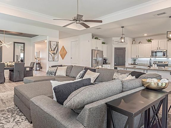 Immaculate Smart Home with In-Law Suite Potential in Sought-After Forest Bay Estates! Welcome to your dream home in the coveted Forest Bay Estates—where comfort, convenience, and elevated living come together. This move-in-ready 5-bedroom, 3.5-bath home includes a 3 car garage, access to a sparkling community POOL, and offers the perfect balance of sophistication and practicality. Step inside to a light-filled, open-concept layout featuring 10-foot tray ceilings, elegant crown molding and custom built-ins that create an inviting living space. The versatile Camden floor plan includes a rare bonus flex space—thoughtfully converted into a fifth bedroom with its own closet—ideal for an in-law suite, home office, or private guest quarters. The heart of the home is the designer kitchen, boasting a massive granite island, stainless steel appliances, custom pantry shelving, upgraded backsplash, and stylish fixtures. It flows seamlessly into the main living and dining areas, making it a perfect space for both entertaining and everyday living. Retreat to the luxurious primary suite, complete with tray ceilings, a spa-like en-suite bathroom with soaking tub, shiplap details, separate shower, updated lighting and mirrors, and a custom walk-in closet offering unparalleled storage. Two additional bedrooms are joined by a well-appointed Jack-and-Jill bathroom, providing privacy and functionality for children or guests. A spacious three-car garage, multiple closets, and Smart Home features ensure every need is met with ease and efficiency. Outdoors, enjoy a screened-in patio, fully fenced backyard, and a private irrigation well—offering low-maintenance living and enhanced privacy. Situated just minutes from top-rated schools, shopping, dining, and the white-sand beaches of the Gulf Coast, this home is not just a place to live—it’s a lifestyle. Schedule your private showing today and experience all that this beautiful home has to offer!