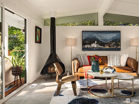 Mid-century Washington Park home, evokes the work of progressive Japanese architects of the era. This residence captures urban cool with a split-level layout that flows with ease. Vaulted ceilings & expansive windows fill interiors with light. Marble counters, high-end appliances & vintage Preway fireplace add timeless style. A heated terrace feels like a treehouse while the front deck shaded by mature trees offers neighborhood charm. Indoor-outdoor living connects to a stone patio, cabana & entertaining area. Wine lovers enjoy a naturally cool cellar (350+ bottles). Versatile rooms & serene primary suite with walk-in closet & marble bath with heated floors complete this rare opportunity in one of Seattle’s most coveted neighborhoods.