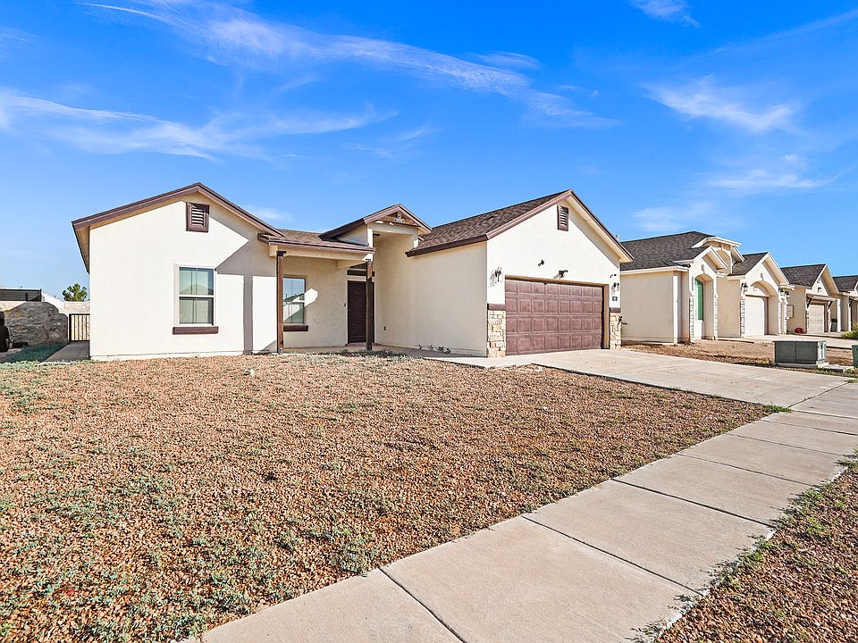 Welcome to this stunning modern home located in the beautiful Socorro suburb of El paso. As you walk into this home you are welcomed into a spacious living area. This home features 3 bedrooms, 2 bathrooms. Step into a cozy and inviting kitchen featuring warm colored backsplash, elegant granite countertops and new, stainless-steel appliances perfect for everyday living and entertaining. There are tiles throughout the entertainment area, lots of granite countertop space.