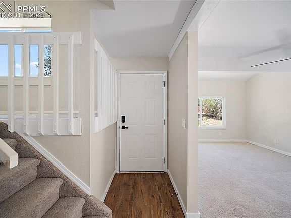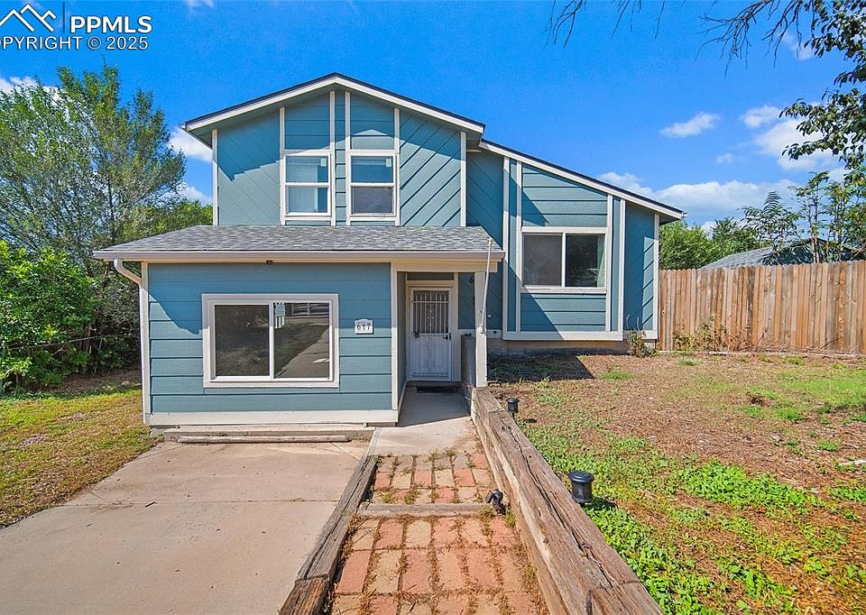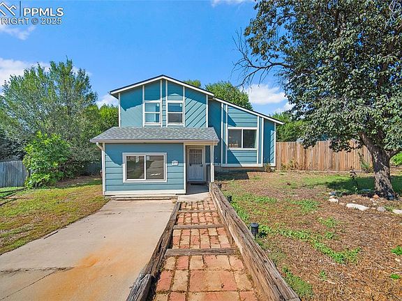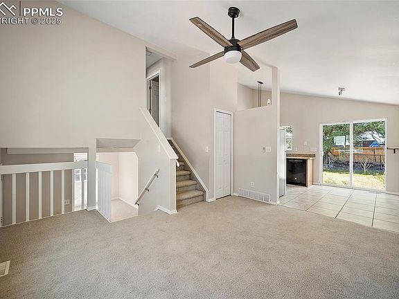 Welcome to this charming tri-level home filled with natural light and thoughtful updates throughout. The main level boasts a spacious living room with vaulted ceilings and a large picture window that creates an inviting, open feel. The dining area features tile flooring and a walk-out to the backyard, conveniently located next to the kitchen with sleek granite countertops. Upstairs you’ll find a generous primary suite with direct access to the full bath, along with a comfortable secondary bedroom. The lower level offers an additional bright living space perfect as a family room, playroom, or office plus a large third bedroom. With six-panel doors throughout, this home blends style and function seamlessly. Step outside to enjoy the large fenced backyard, complete with two storage sheds for all your extra gear. Situated close to schools, parks, shopping, and dining, with easy access to Ft. Carson and I-25, this home is move-in ready and waiting for its next chapter!