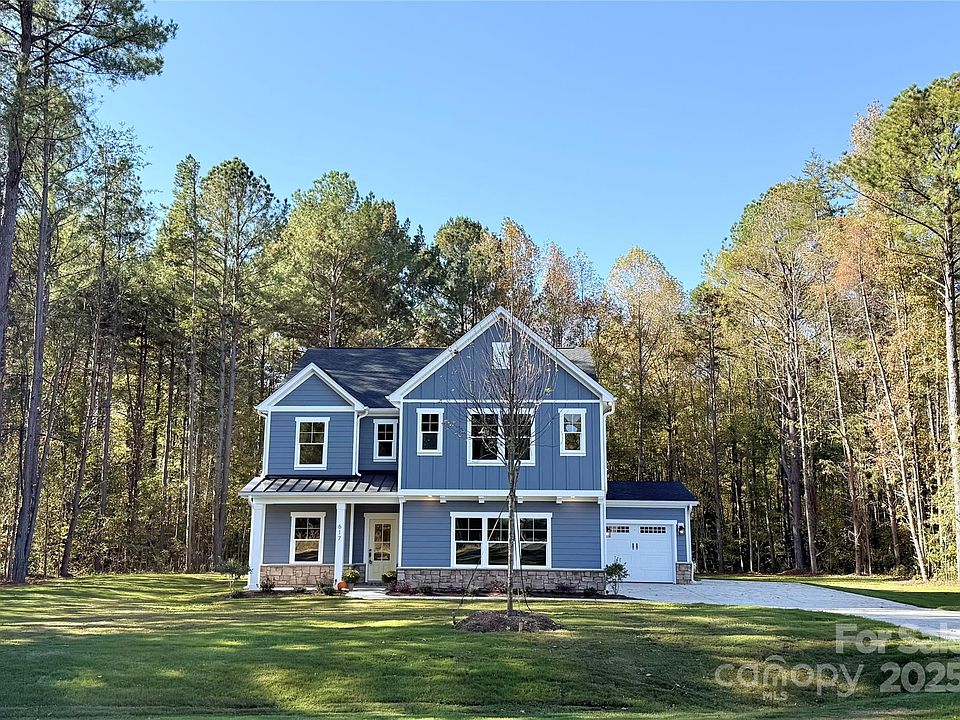 HOME IS COMPLETE! Nestled on serene 3.3 acre lot surrounded by majestic pines, this stunning brand new construction 4 bedroom home is located in highly sought-after Cameron Glen Neighborhood. Crafted w/ Hardie Board siding & stone accents, the exterior exudes timeless charm & durability. Step inside to find a bright & airy, open layout & engineered hardwood floors throughout. This home features a study & designated dining room. Large living room w/ gorgeous shiplap wall. Living room opens to kitchen w/ quartz countertops, white subway tile back splash & crisp white soft close cabinets & drawers. Large island perfect for both everyday living & entertaining. Upstairs holds oversized primary bedroom & en-suite w/separate dual vanities, subway tiled shower & spacious walk in closet. Three additional bedrooms, full bath, laundry room & amazing loft area. Out back, enjoy 12’x12’ covered porch with ceiling fan & the peaceful bliss of your large back yard. Conveniently located between I85 & I40. Easy commute to Mooresville, Winston-Salem.
