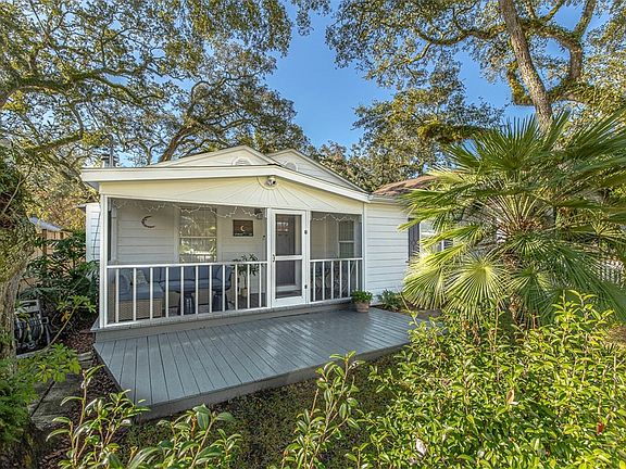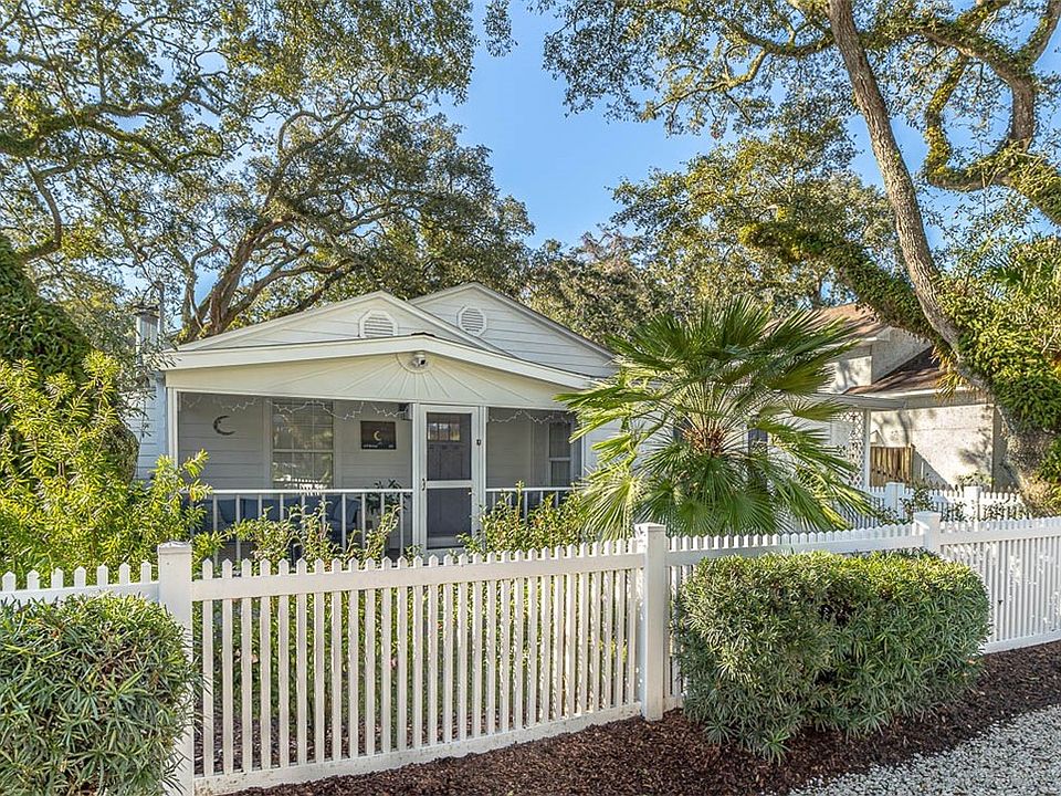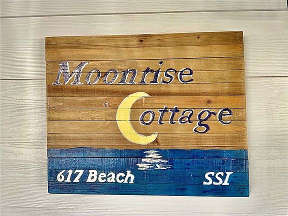 Best location on the island! Moon Rise Cottage is only 3 1/2 blocks to great beach (Myrtle), less than 10 min walk to brewery and restaurants near King & Prince, 15 minute walk to Pier Village. Situated High and Dry 617 Beach Dr is in an X Flood Zone (no flood insurance required) - NO flooding from Irma. Quiet residential street shaded by live oaks with great neighbors. The Wainscoting and refinished oak floors add character, light and bright thanks to skylights, newly renovated kitchen with shaker cabinets and quartz countertops open to living area. Classic white tile and marble bathrooms, on-demand water heater. New carpet in front 2 bedrooms. Flexible floor plan with one bedroom apartment in back (bedroom, bathroom, laundry, combo living area and kitchen, fireplace) that can be open to rest of house or closed off for guests or separate vacation rental. Zoned HVAC with two thermostats. Exterior has new Hardie plank siding and gutters. Front yard with picket fence, low-voltage lighting, flagstone path, screen porch. Out back, there is a new Trex deck, outdoor shower, and a fenced backyard with room for a pool. Parking for multiple vehicles including attached one car garage with extra storage space. This home is offered as a turn key rental completely furnished including linens and dishes.