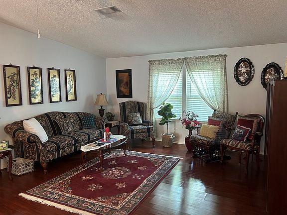 This is a 55 + community with indoor/outdoor pools, gym, Tennis, pickleball, water aerobics, billiard tables, card room, 2 clubhouses and lots more. This is a beautiful 3 bedroom home. Well maintained. Kitchen is beautiful lots of cabinets, nice appliances. Large master and guest bedroom. 3rd bedroom is a nice size. Nice vinyl flooring thru -out home except the bathrooms and Kitchen. Front Lanai. 2 car carport. This home is located in the newer section. This is a must see home